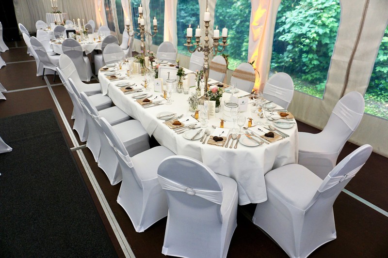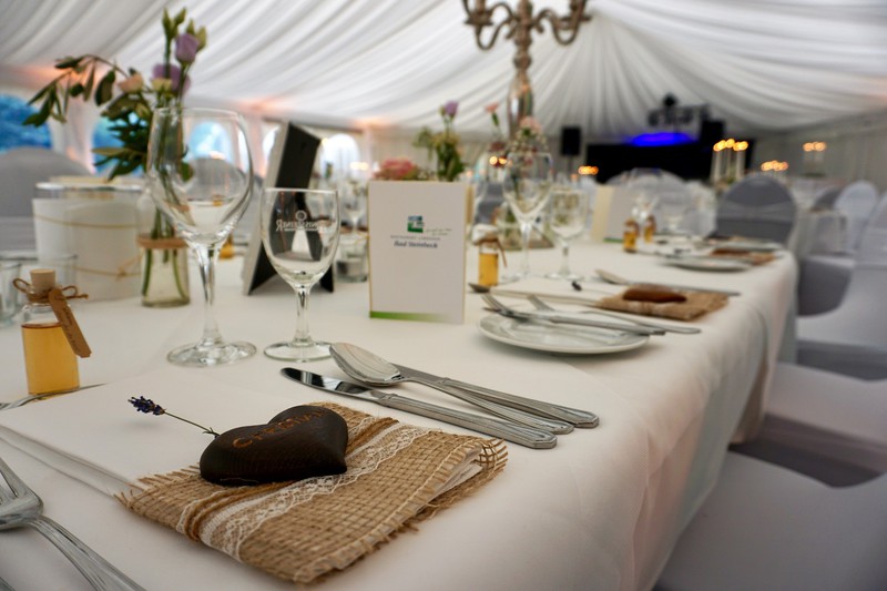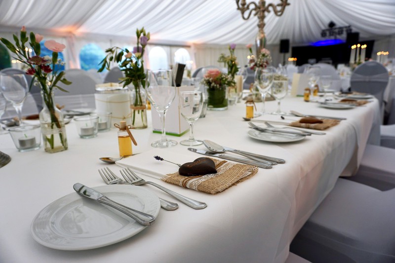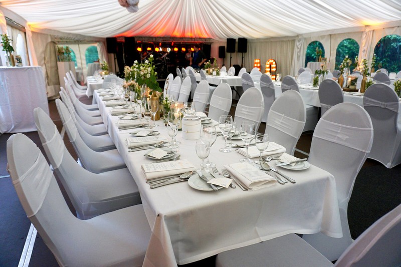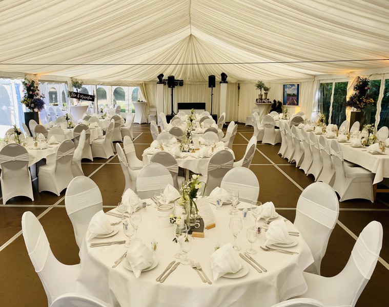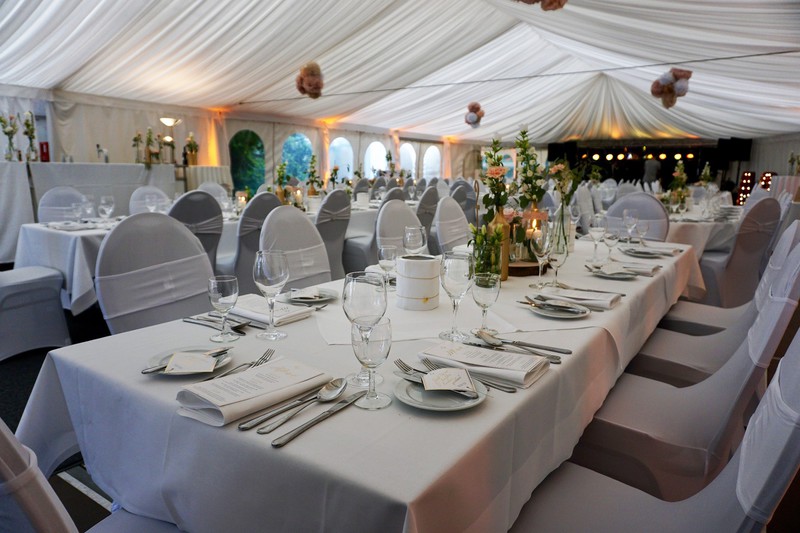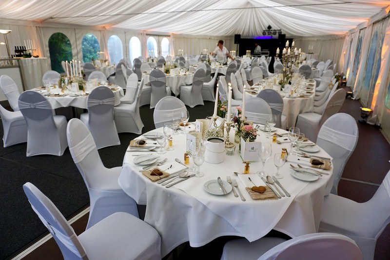 • Festliche Menüs oder Buffets im eleganten Sommer-Festzelt