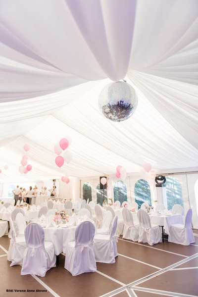 Unser Festzelt im großzügigen Landhausgarten bietet Platz