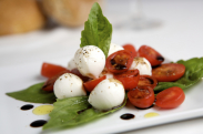 Cremige Burrata auf lauwarmen Kirschtomaten & Basilikum,